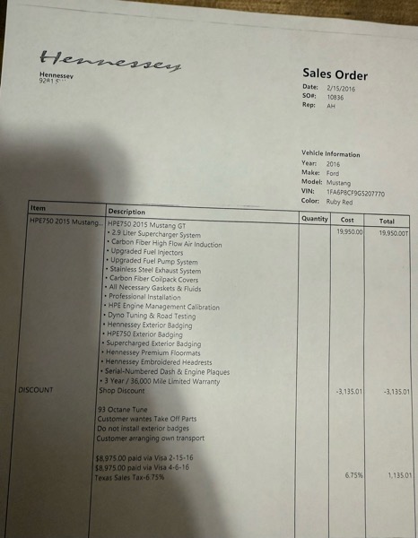 2016 Ford Mustang GT with $20,000 Hennessy package with paperwork